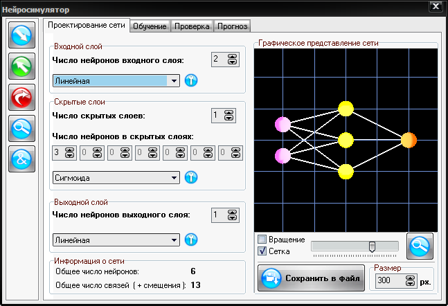 Эта лабораторная работа представляет собой нейропакет, т.е. программу, предназначенную для проектирования, обучения, тестирования и использования нейронных сетей.